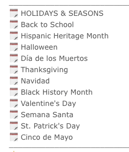 Then, I looked at holidays and seasonal resources. I wrote down which holidays stood out to me throughout the year.